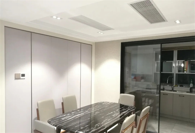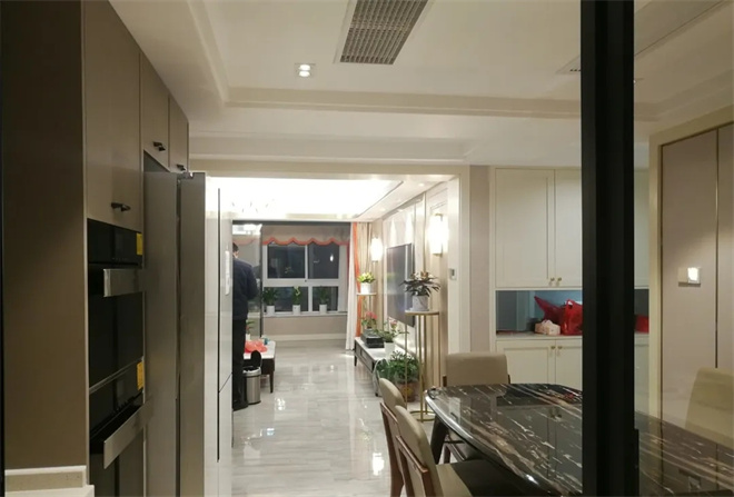 黑色大理石臺面的餐桌,與簡約的餐椅相搭配,既與整體空間氛圍協調融合,又呈現現代獨特的簡約氣質。