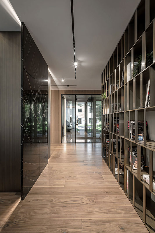 頂天立地的展示型書架不但給家?guī)砦幕瘹庀ⅲ€提供了充足的存書空間。